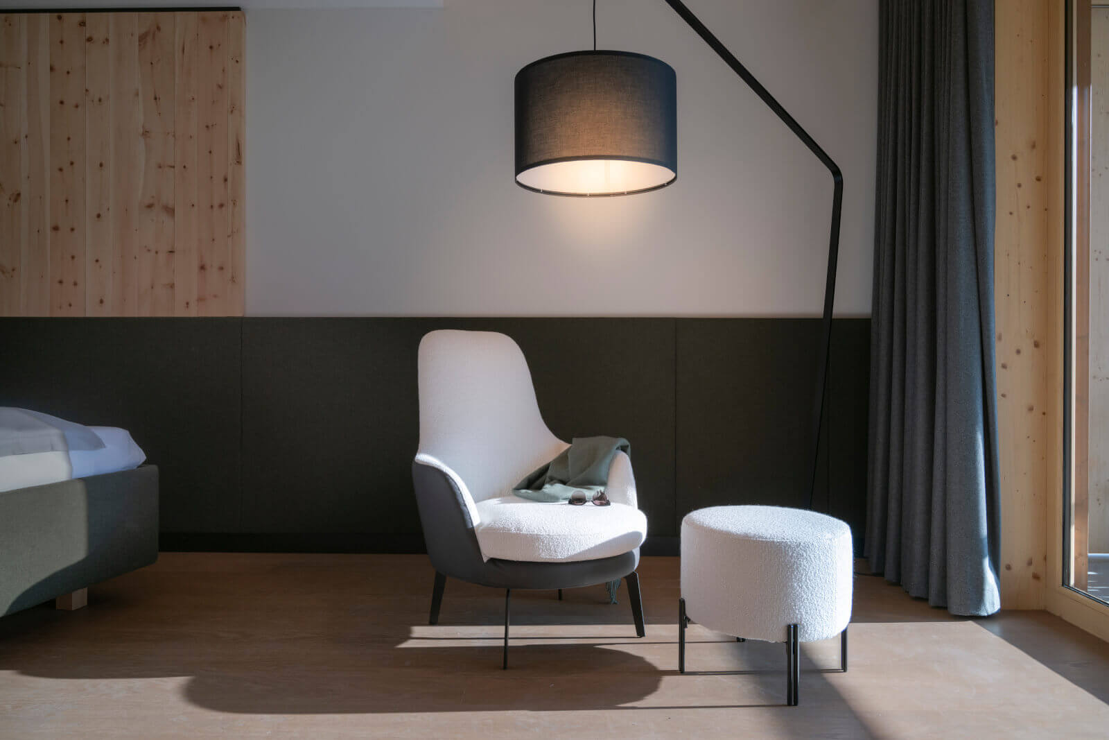 Ein zentrales Gestaltungselement sind die großzügigen Glaselemente von Gutbrod-Fenster. Im Zusammenspiel mit der Holzfassade strukturieren sie die Außenansicht des Gebäudes und verleihen ihr eine offene, harmonische Anmutung. Die weitläufigen Fensterflächen lassen wohltuendes, heilsames Licht in die mit Naturmaterialien gestalteten Räume fließen und öffnen den Blick auf die Parklandschaft und das weite Blau des Bodensees.